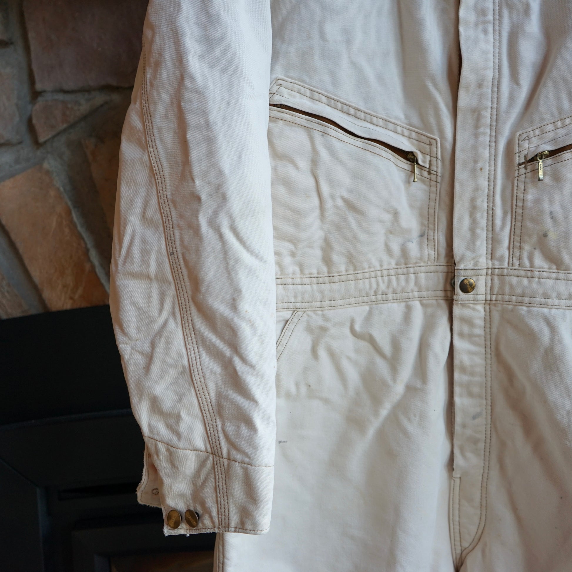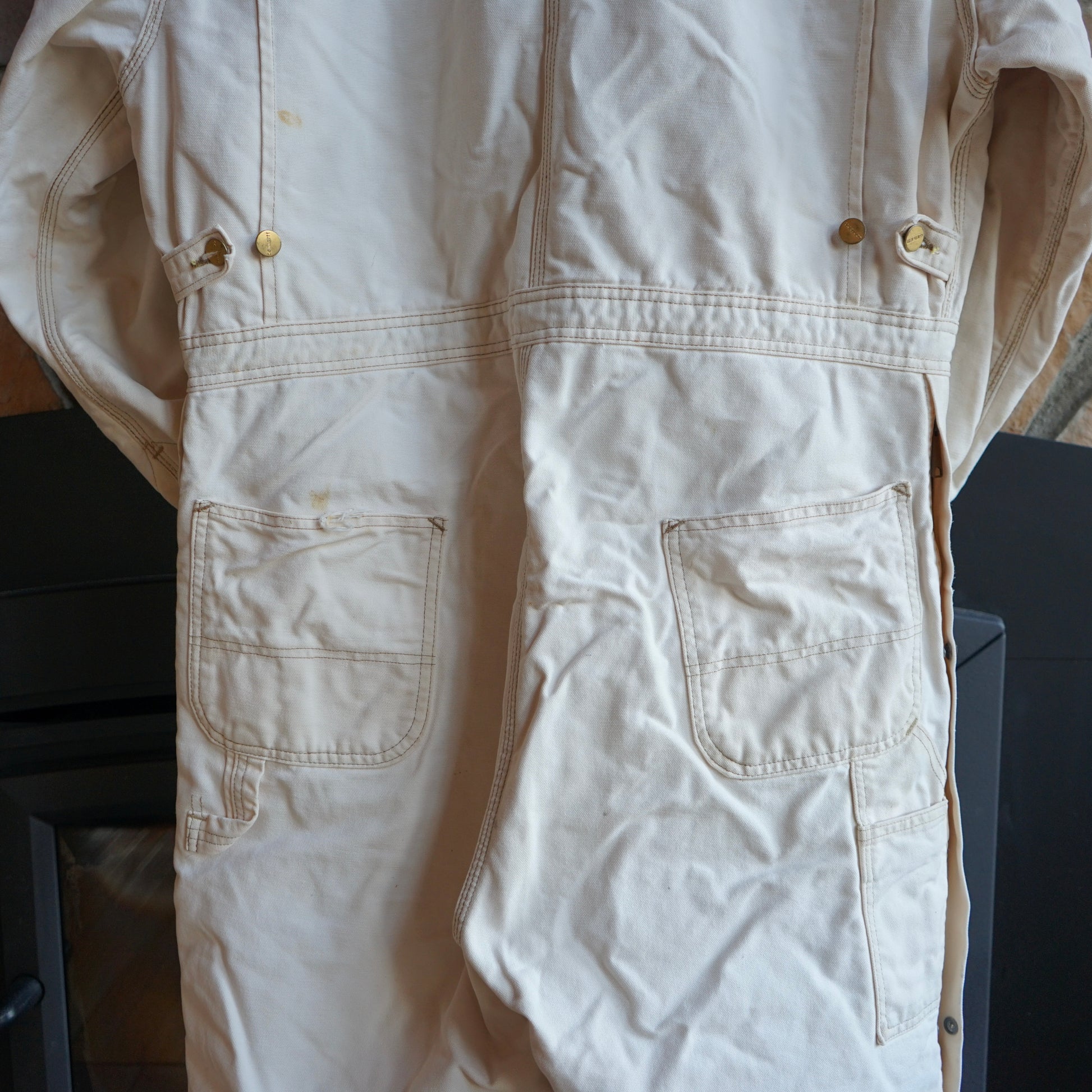 Vintage Faded Cream Carhartt Insulated Coveralls Size L