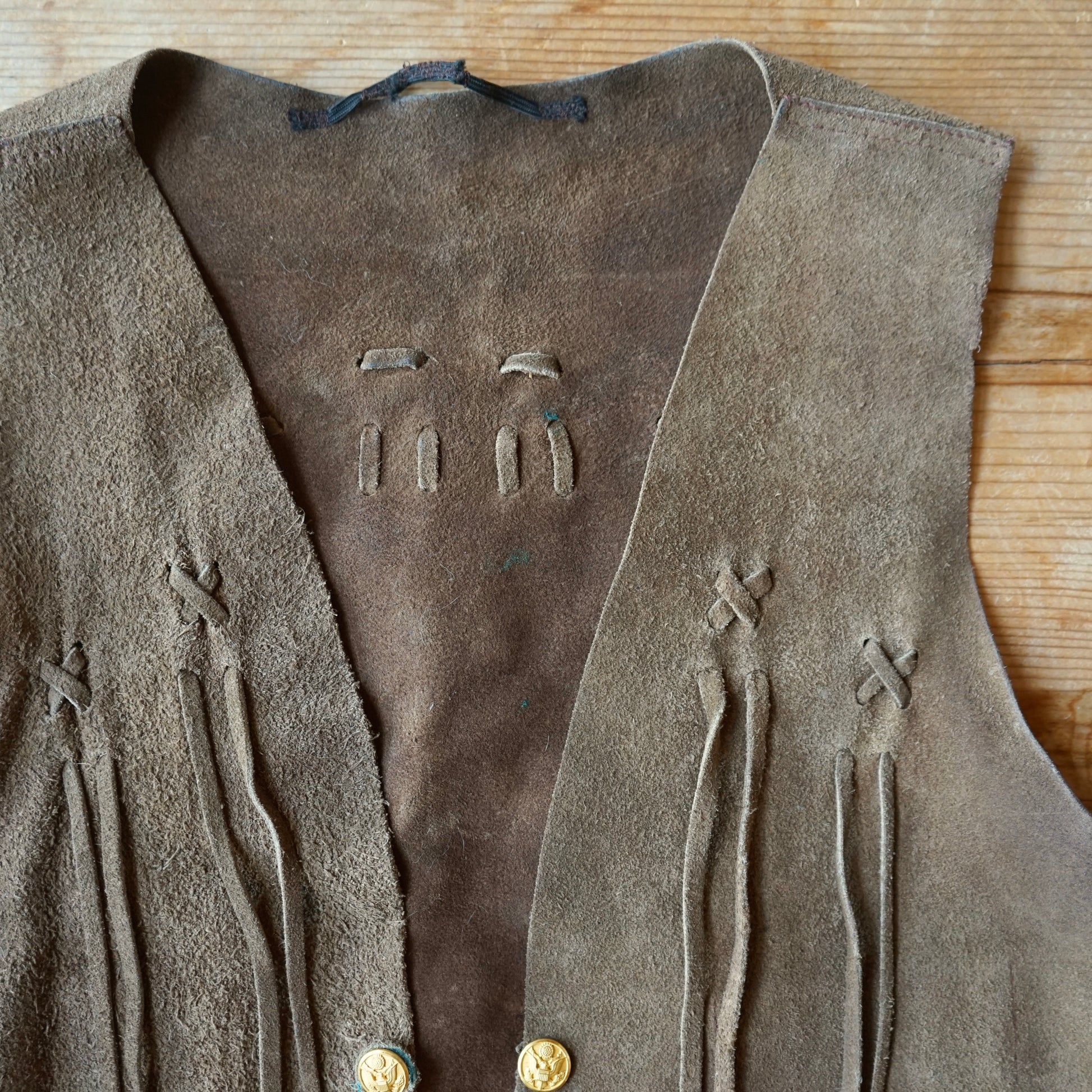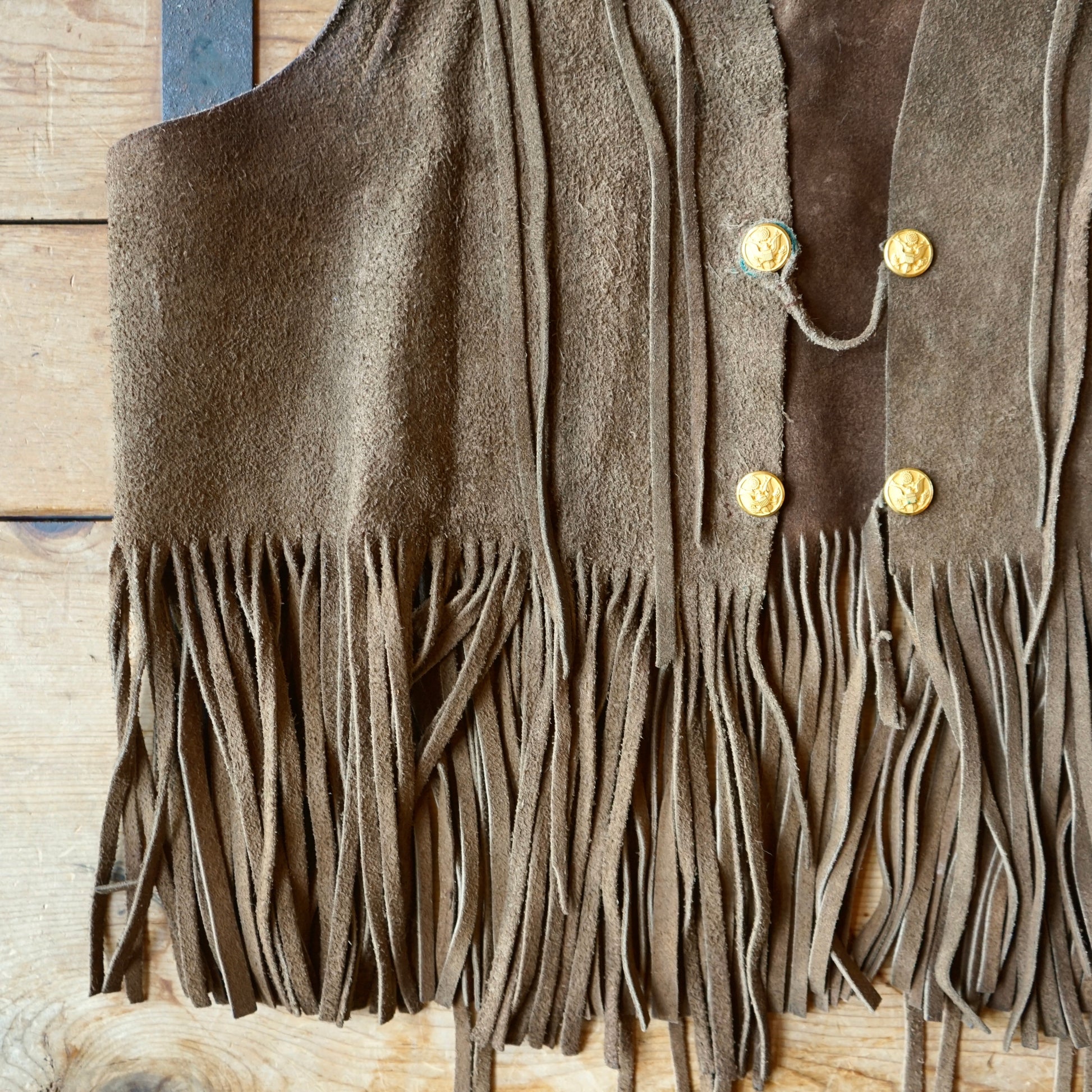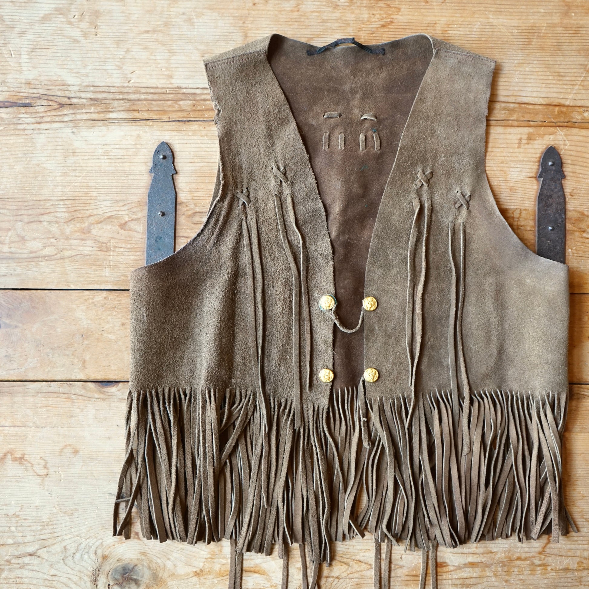 Vintage Handmade Brown Leather Fringe Vest Size M