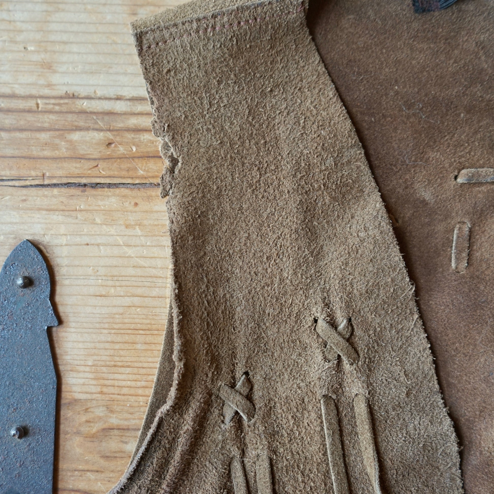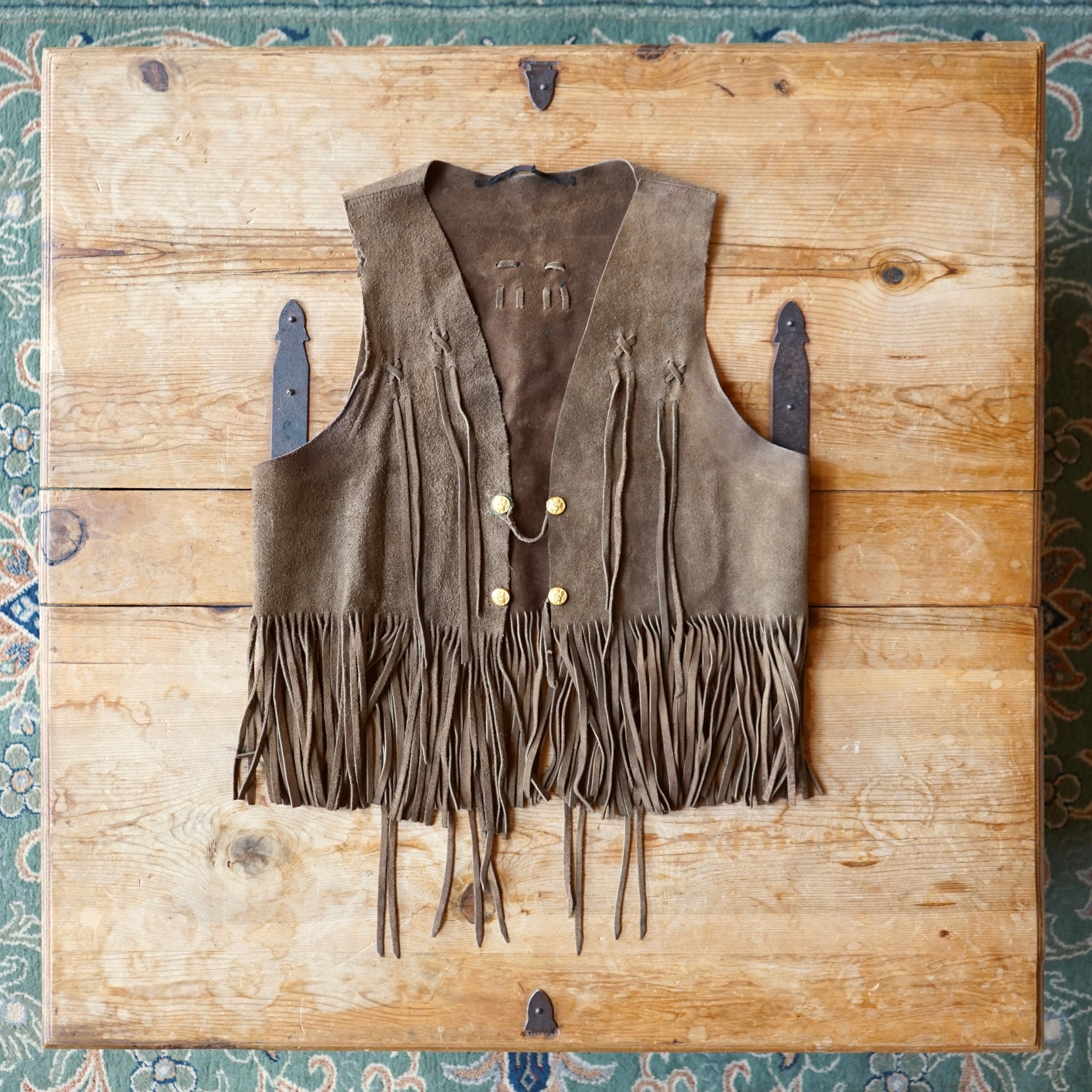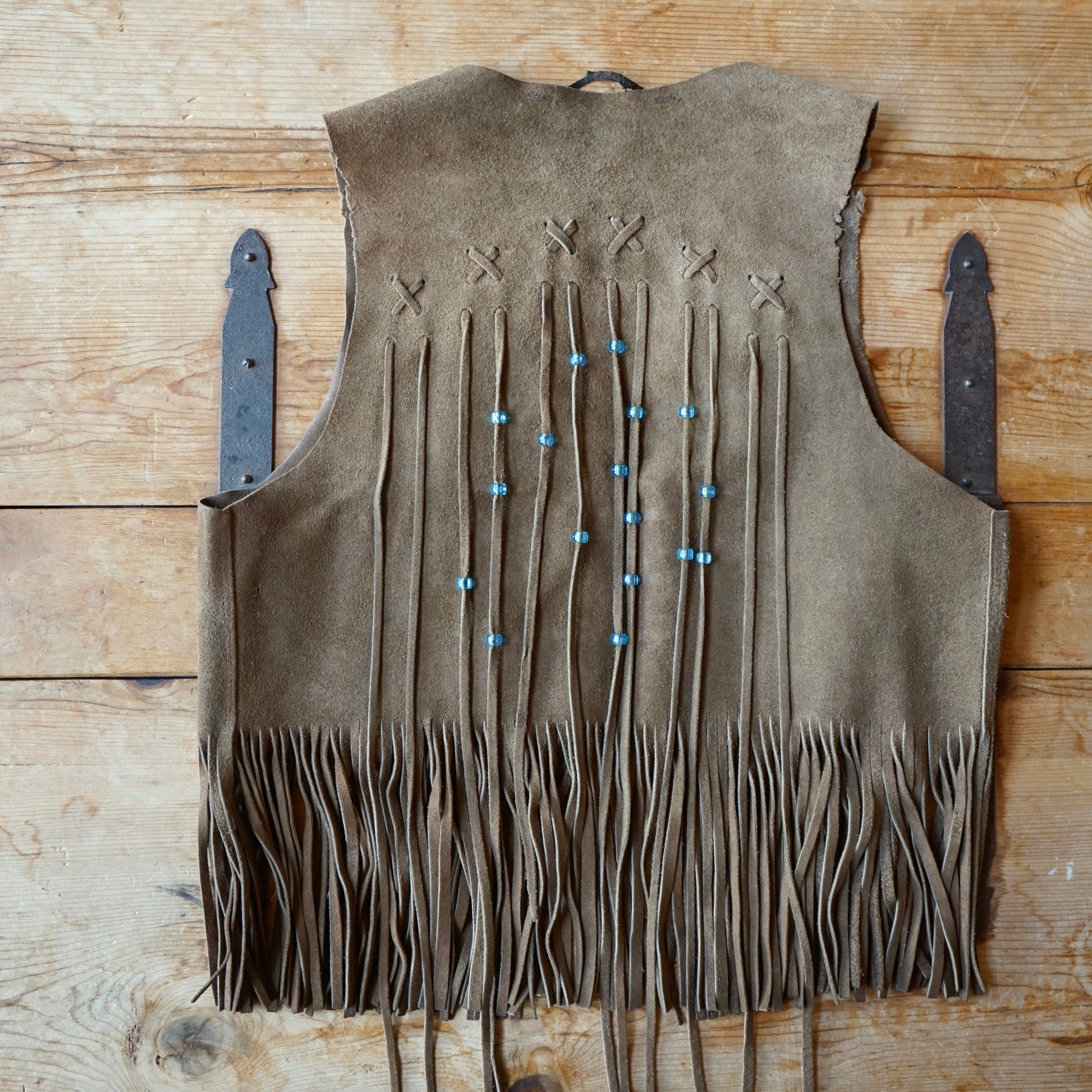 Vintage Handmade Brown Leather Fringe Vest Size M