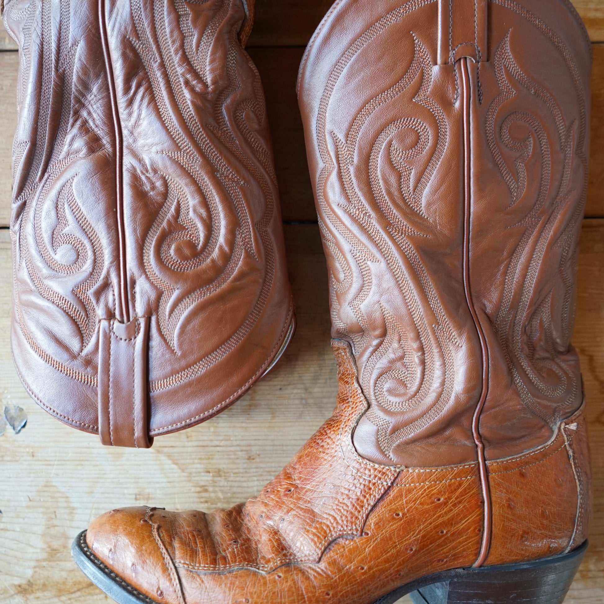 Vintage Mens Leather & Ostrich Skin Tony Lama Boots